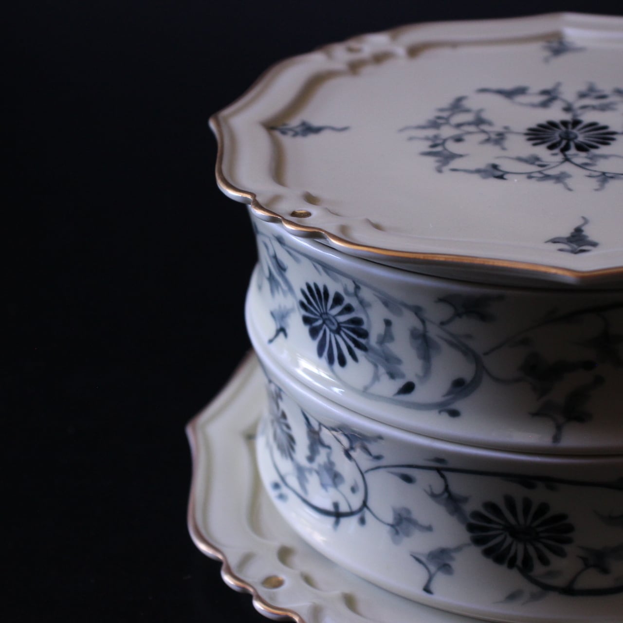 蓋、身が浅い、身が深い、台皿の4点セットです。