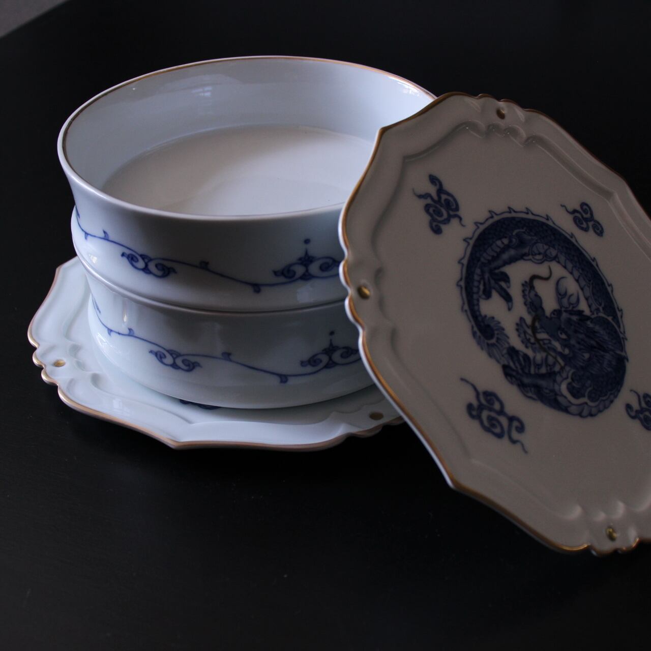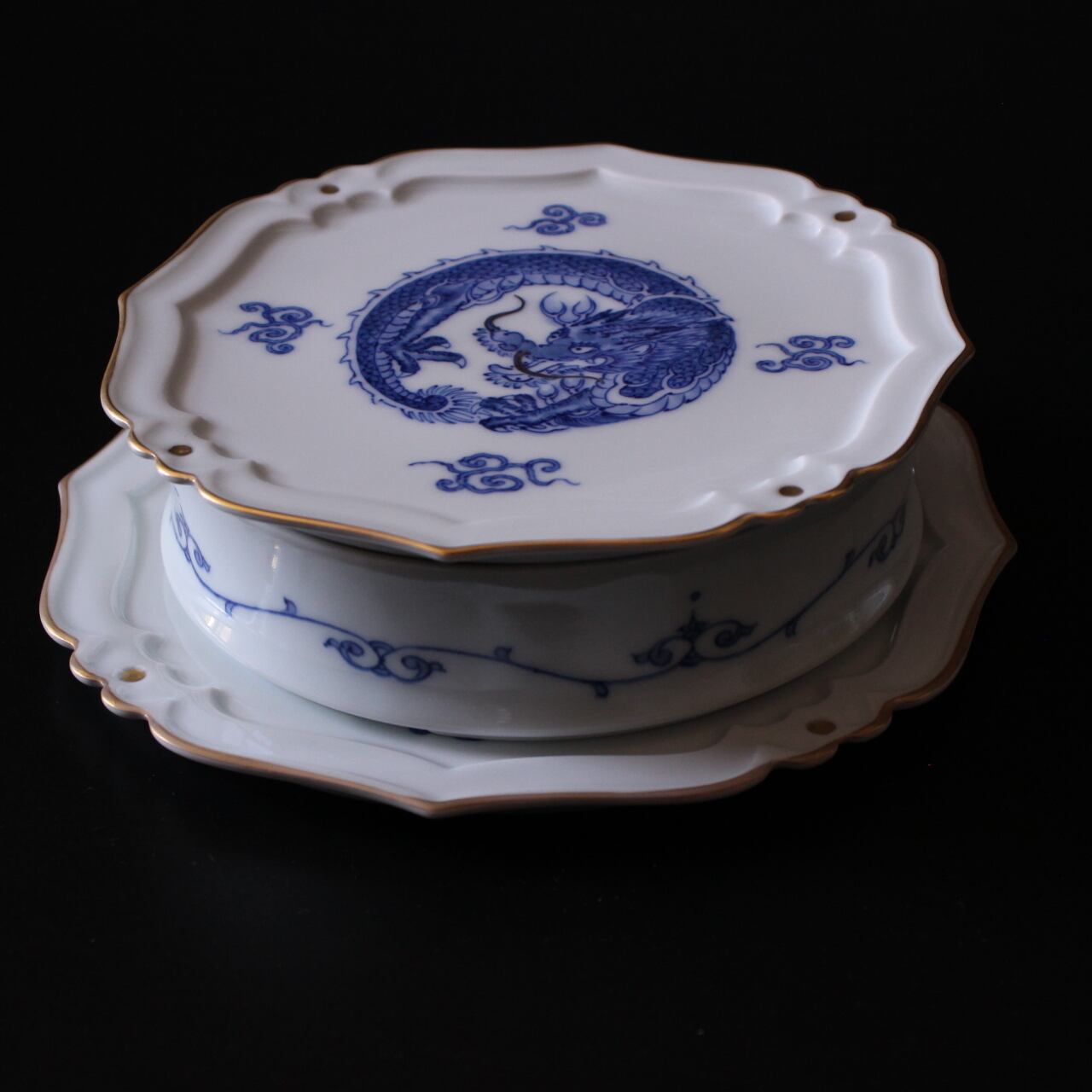 蓋、身が浅い、身が深い、台皿の4点セットです。