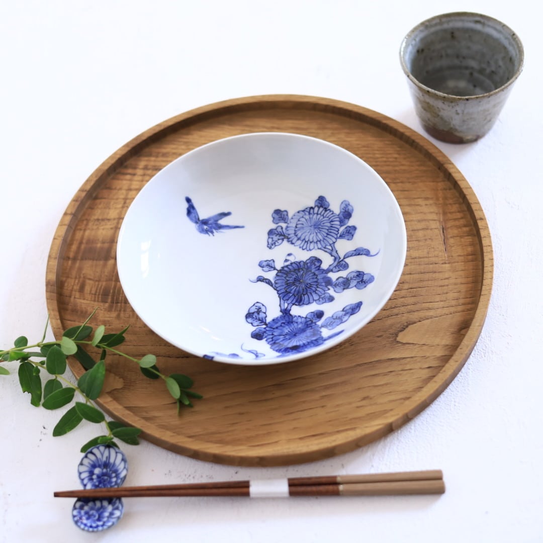 加藤幸治さんの作品です。 少し青みがかった白磁に鉄粉があり、絵付けと相まってとても味わい深いです。 1枚ずつ花の位置や鳥の飛び方などが違い、 とても遊び心のあります。 お好きな柄をお選びください。 φ約18.5cm h約3.5cm ※手作りのため、多少個体差がございます。 予めご了承ください。