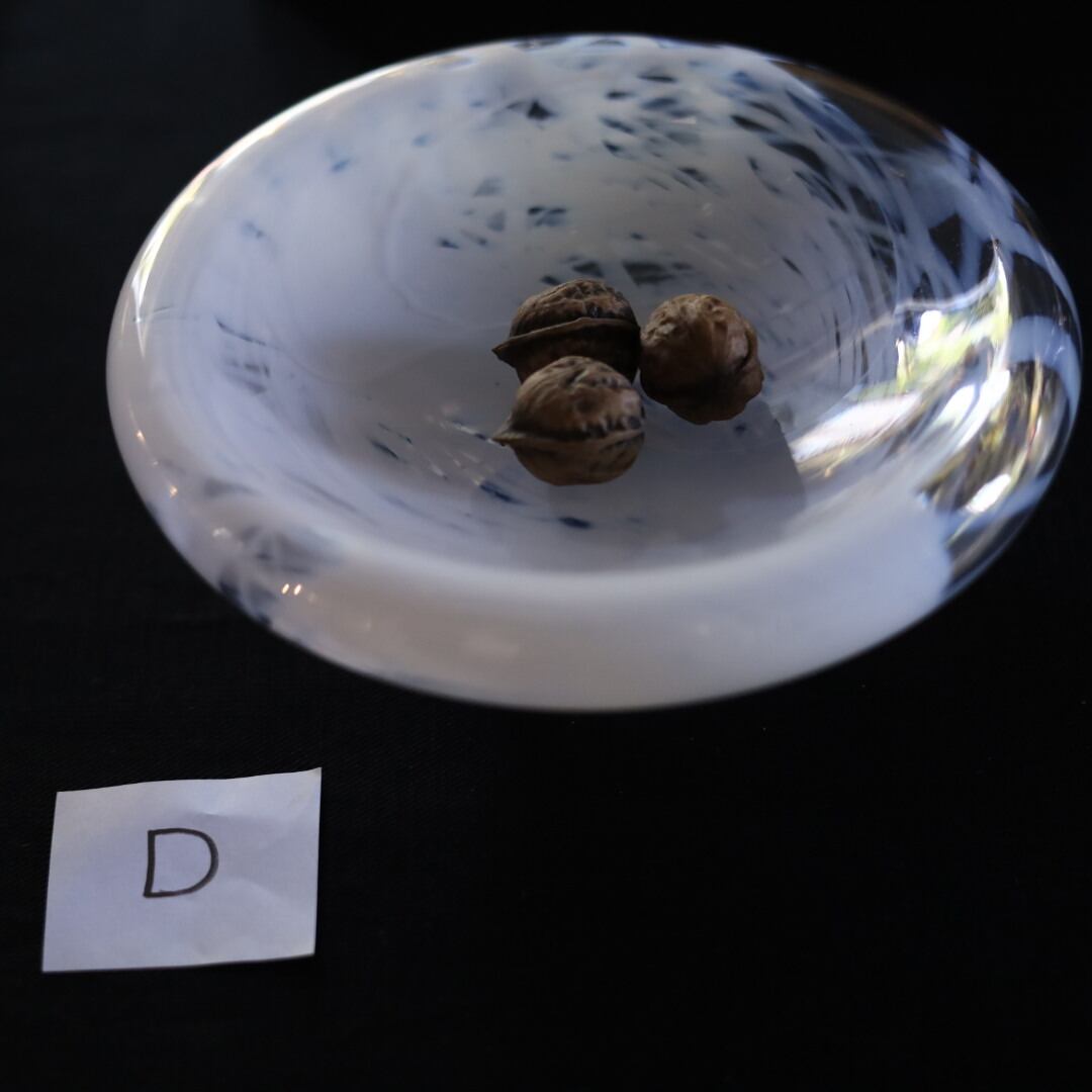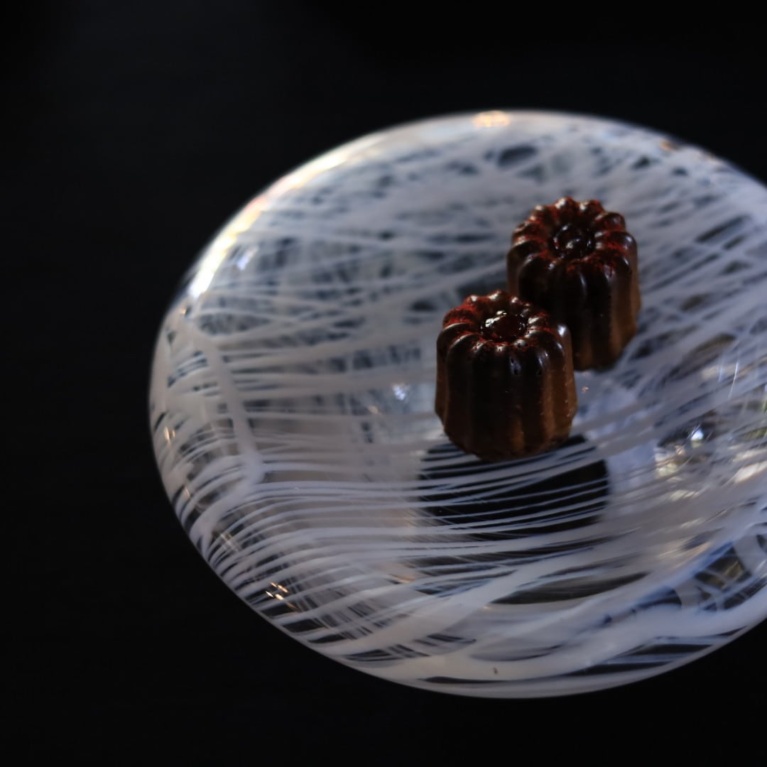 φ18×h7 使い方によって表現が広がるガラスの器です。空洞の部分にグリーンやお花を入れて使っても。 柄の入り方によって多少の重さ、膨らみの差があります。