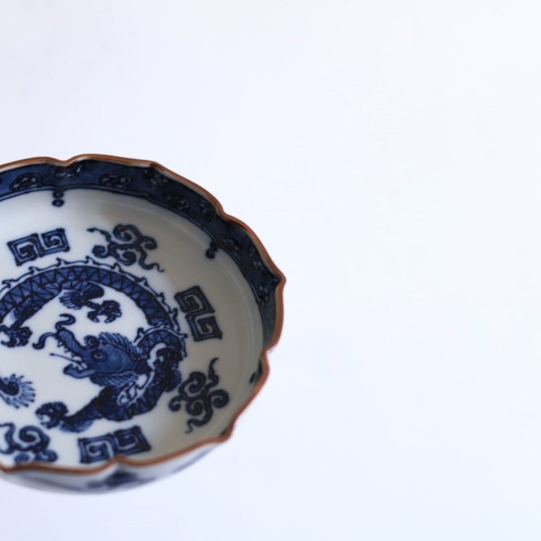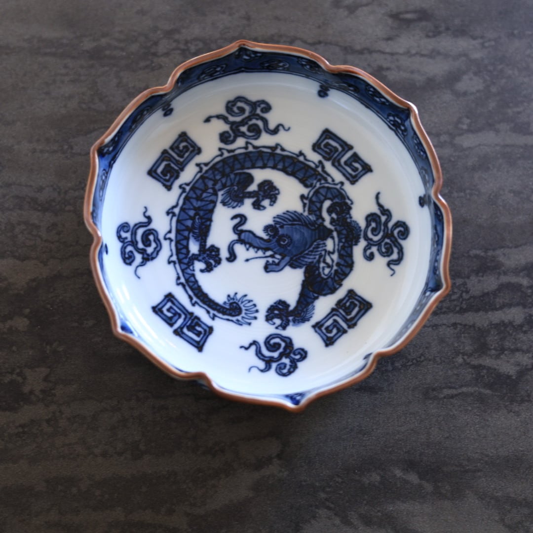 φ14.8㎝ h4㎝ 濃い呉須で描かれた龍の絵。 迫力があるなかにも愛嬌があります。