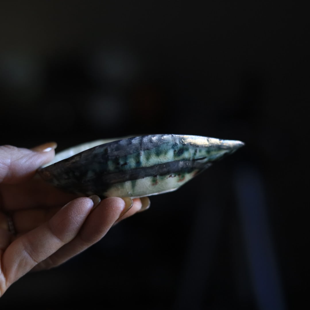 約10.2㎝×約6.2 h3㎝ ※手作業であることや焼成・釉薬等の特性により、サイズ・色味・形状が異なります。 手作りの味わいや意匠として、ご理解いただきますようお願いいたします。