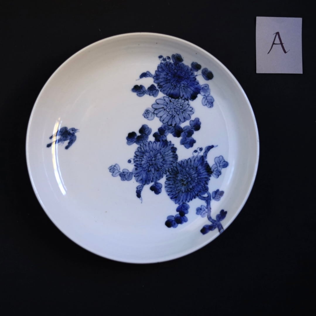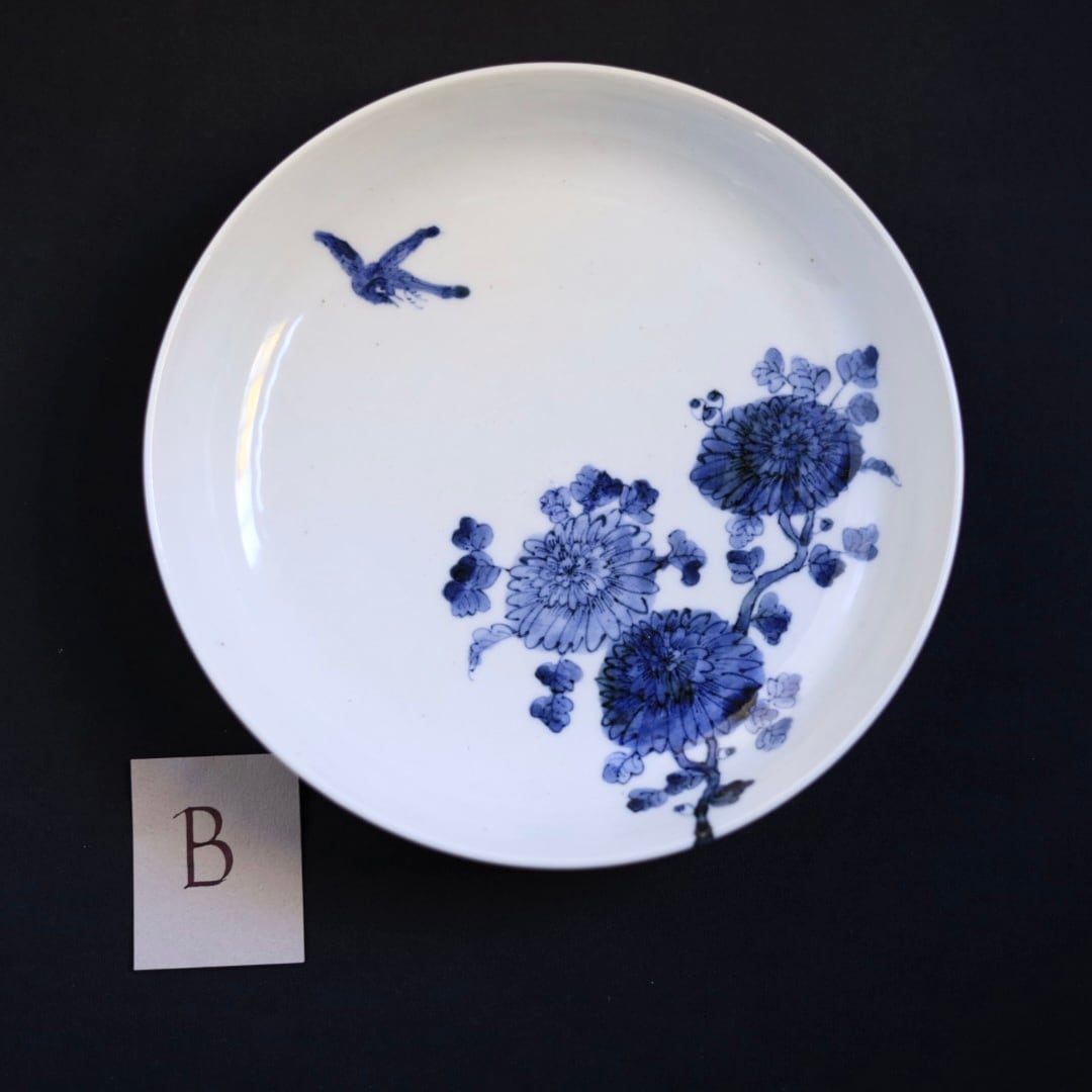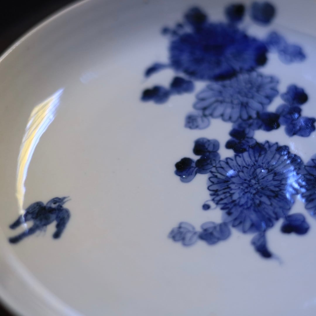加藤幸治さんの独特な感性が光る、風情ある染付菊紋7寸皿です。