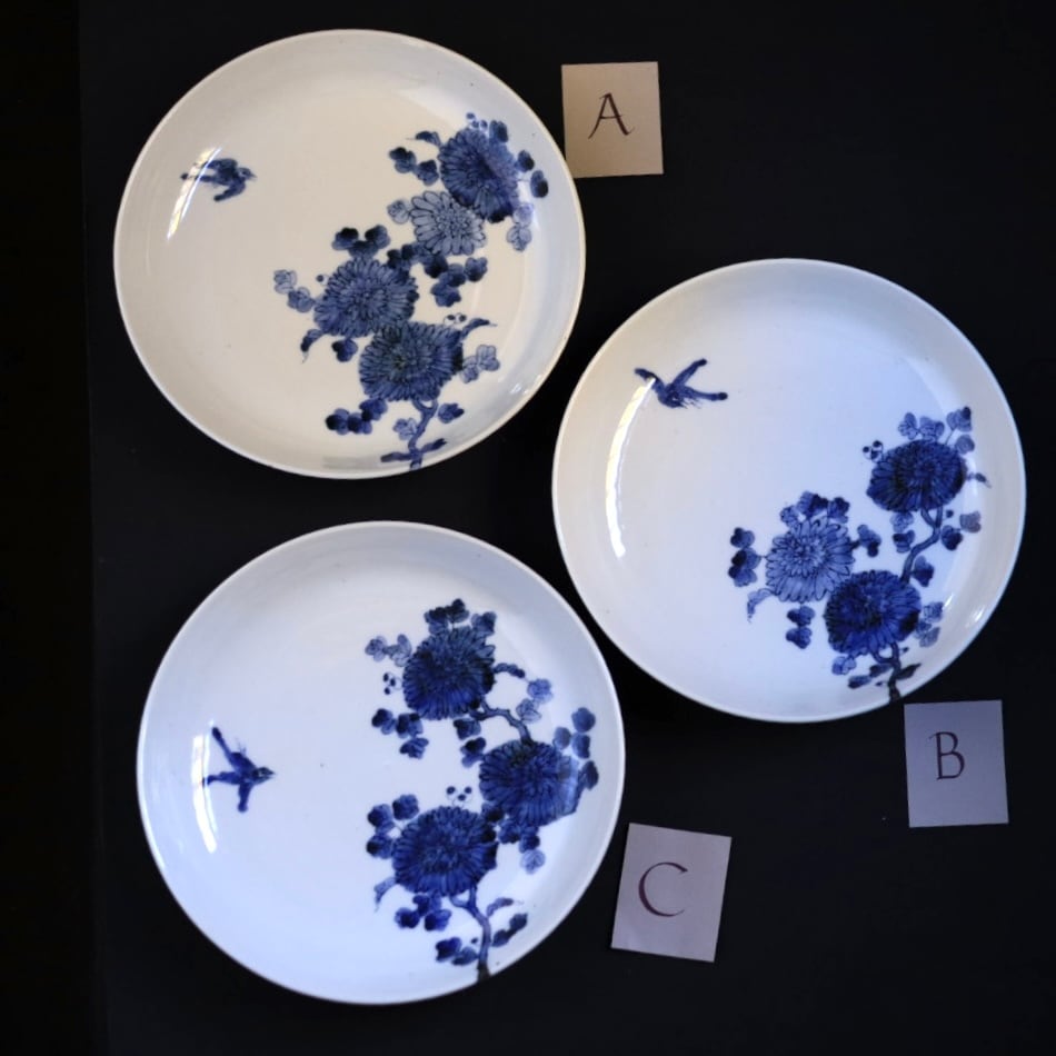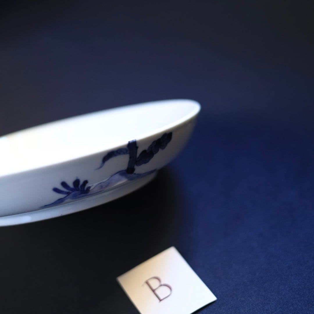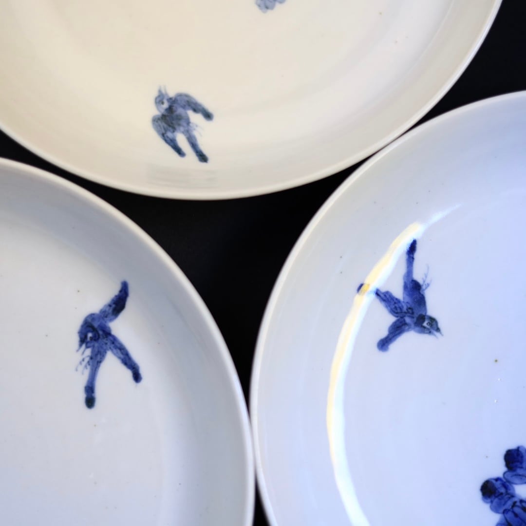 少し青みがかった白磁に鉄粉があり、絵付けと相まってとても味わい深いうつわです