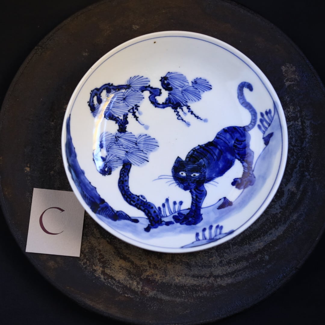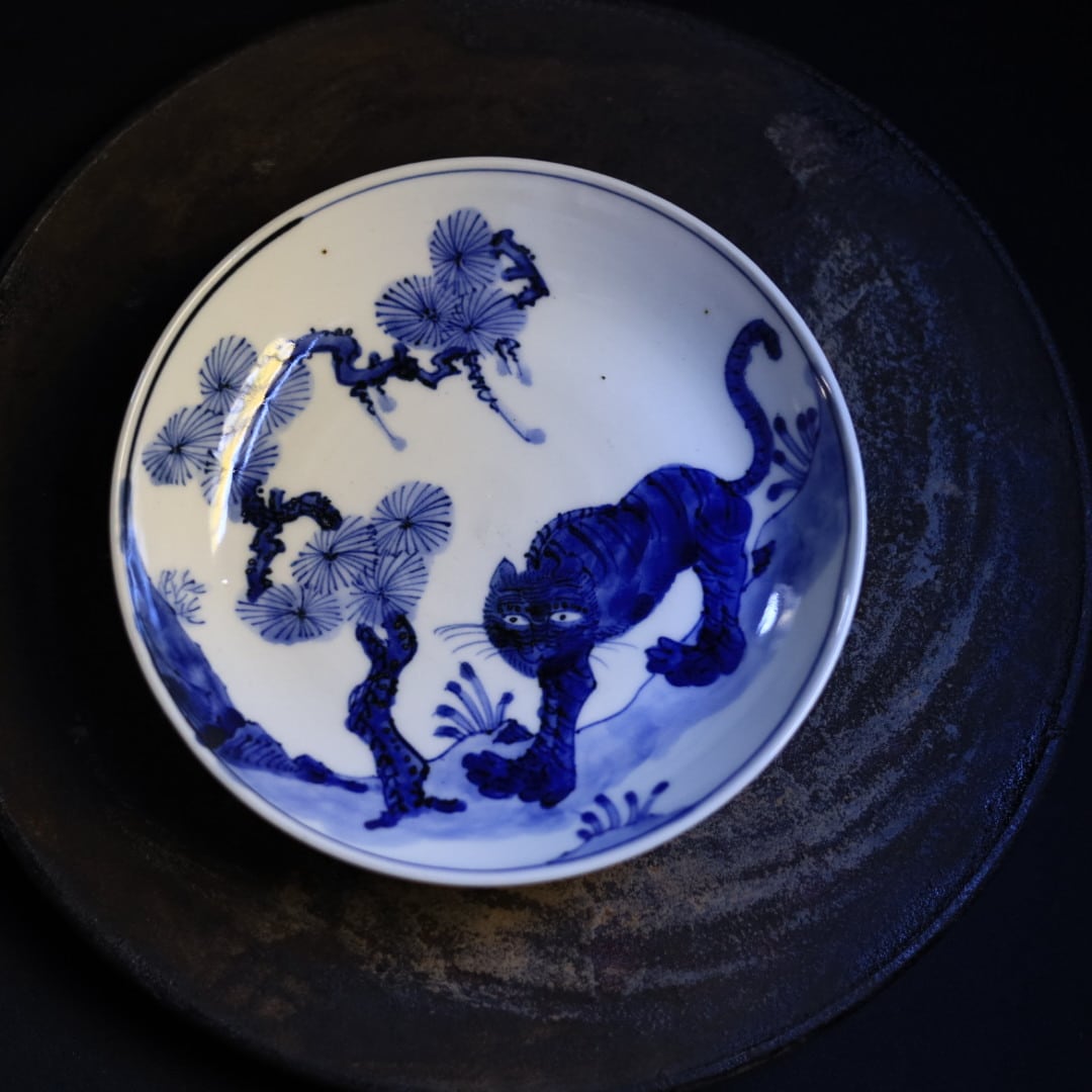 少し青みがかった白磁に鉄粉があり、絵付けと相まってとても味わい深いです。