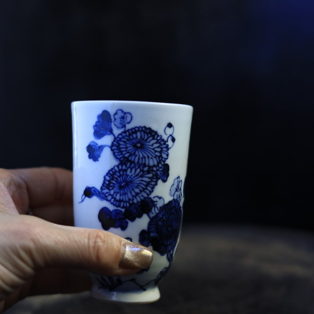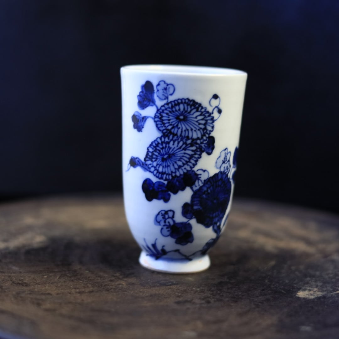 加藤幸治さんらしい、遊び心のある染付けの湯呑みです。 ひとつひとつ柄の配置が異なります。 お送りするものはスタッフのお任せになります。 予めご了承ください。 【サイズ】φ約6.2 高さ約10cm ※作家もののため、高さなどばらつきがございます。予めご了承ください。