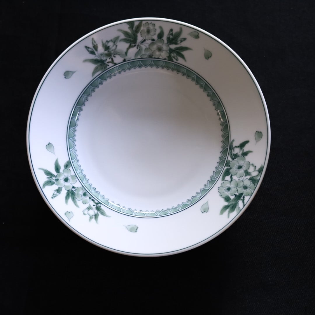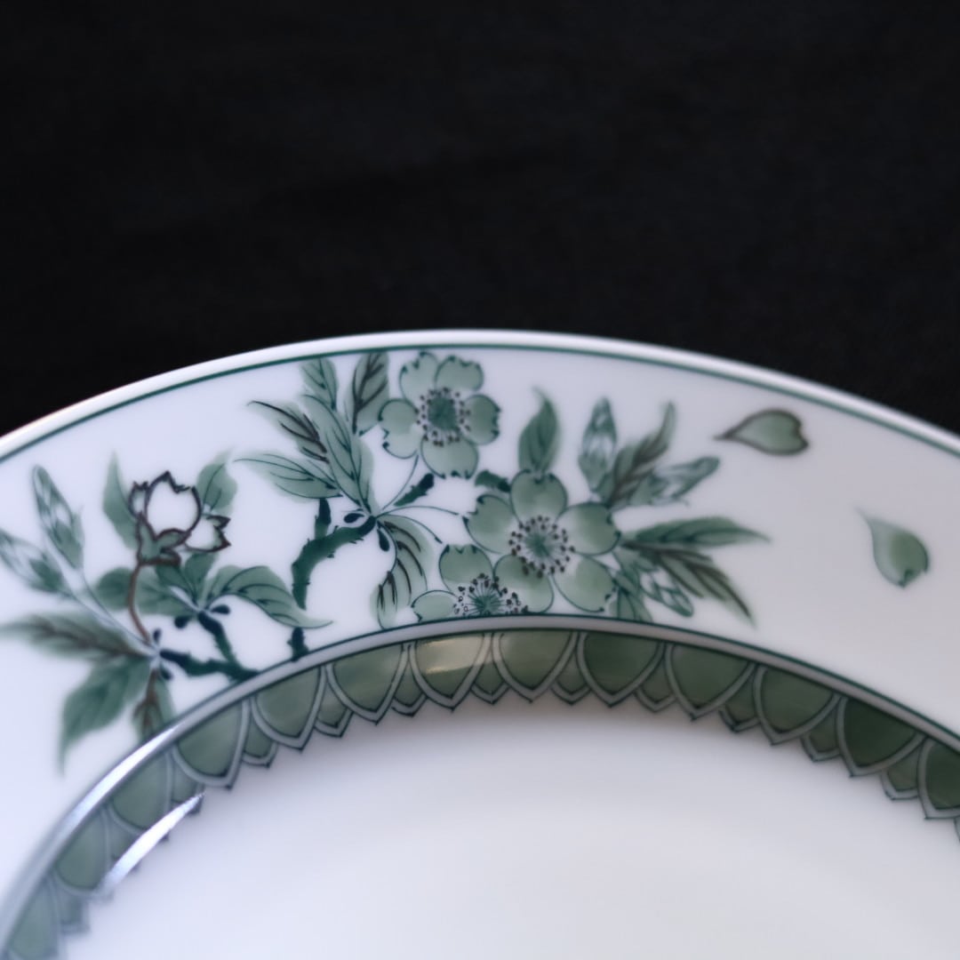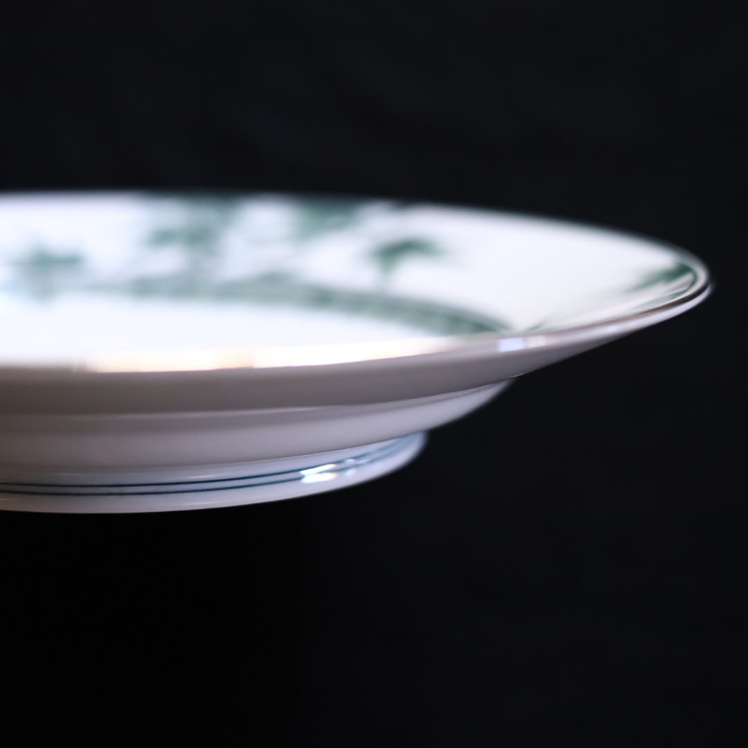 お好きな盛り付けでお楽しみください。三川内焼伝統の細描きを生かし、その曲線と濃淡を緑色で表現しています。