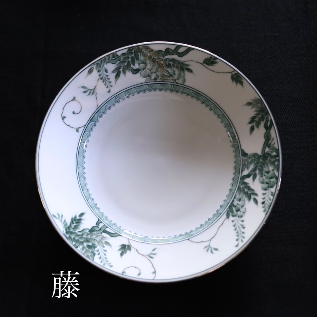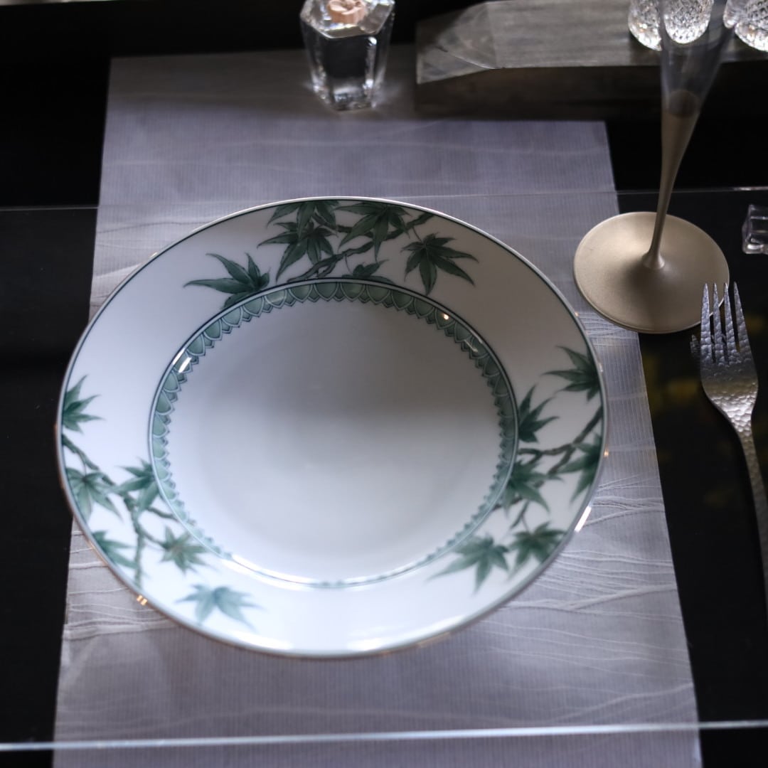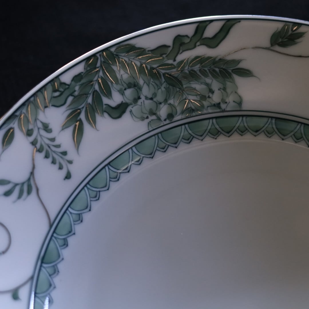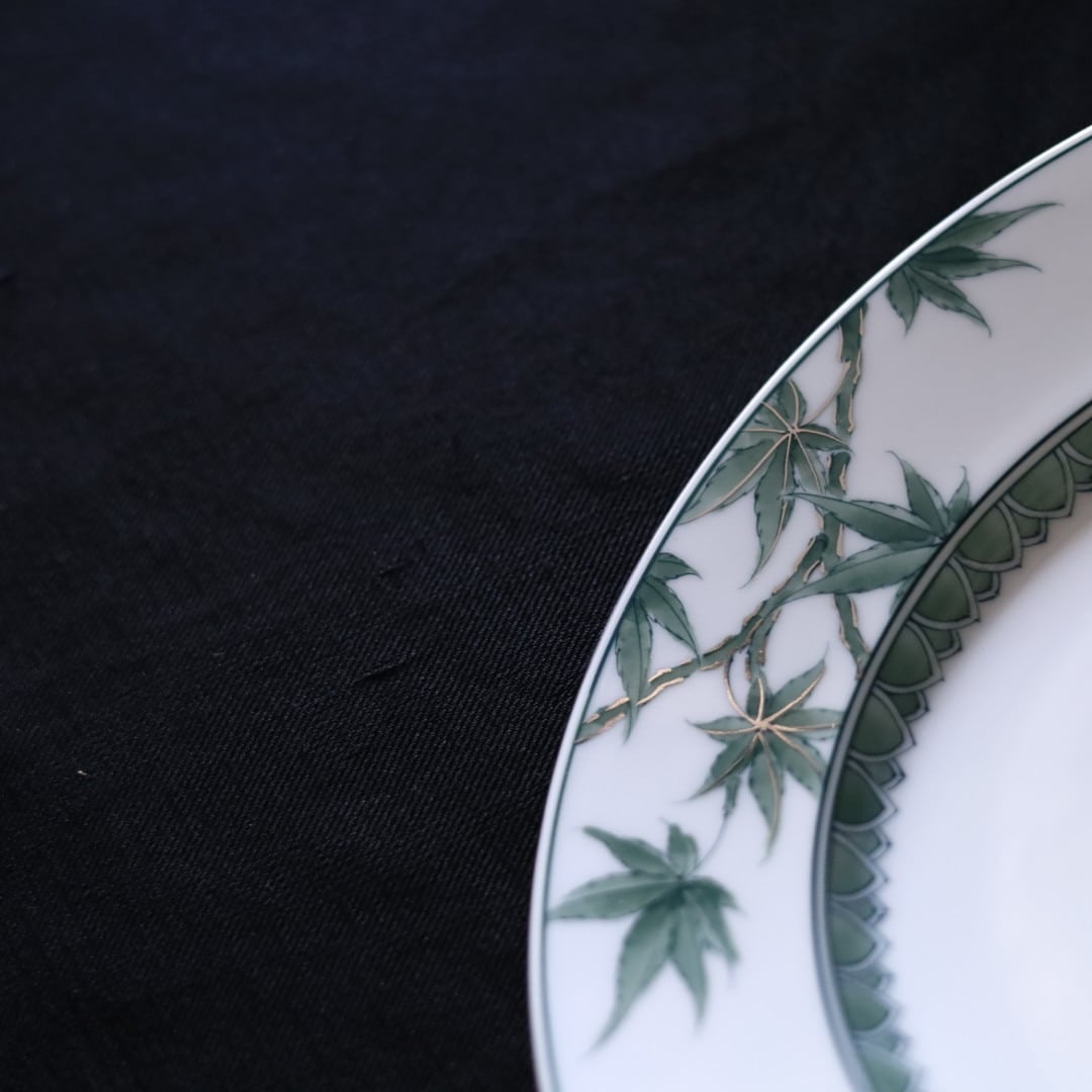 お好きな盛り付けでお楽しみください。三川内焼伝統の細描きを生かし、その曲線と濃淡を緑色で表現しています。
