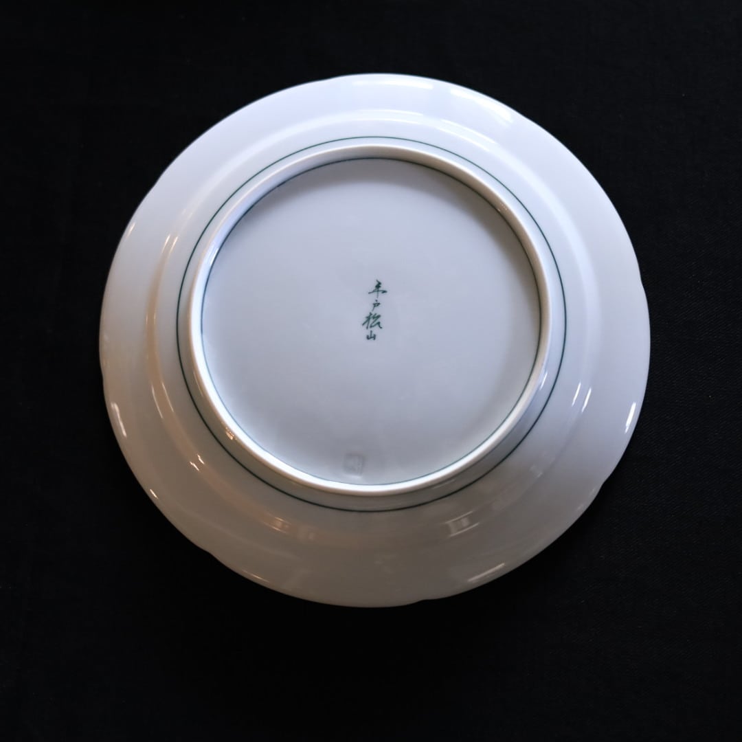 平戸松山窯の季節の花を描いた彩花シリーズの新色のプレート皿です。