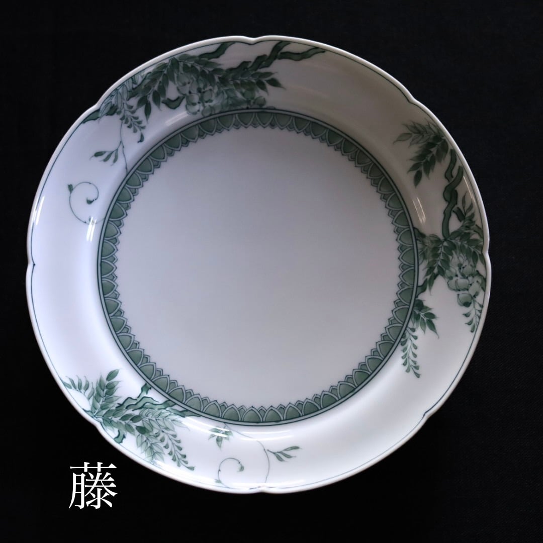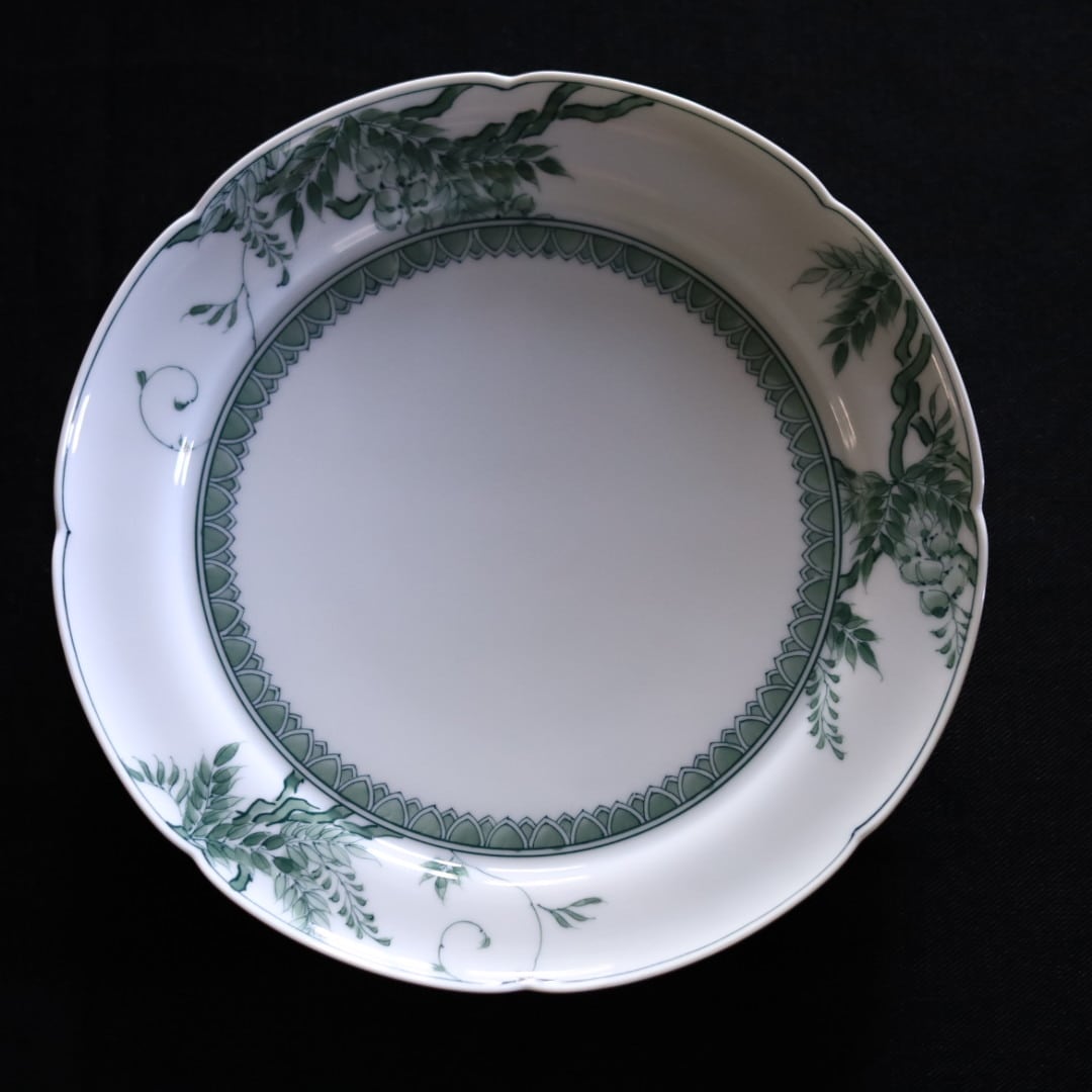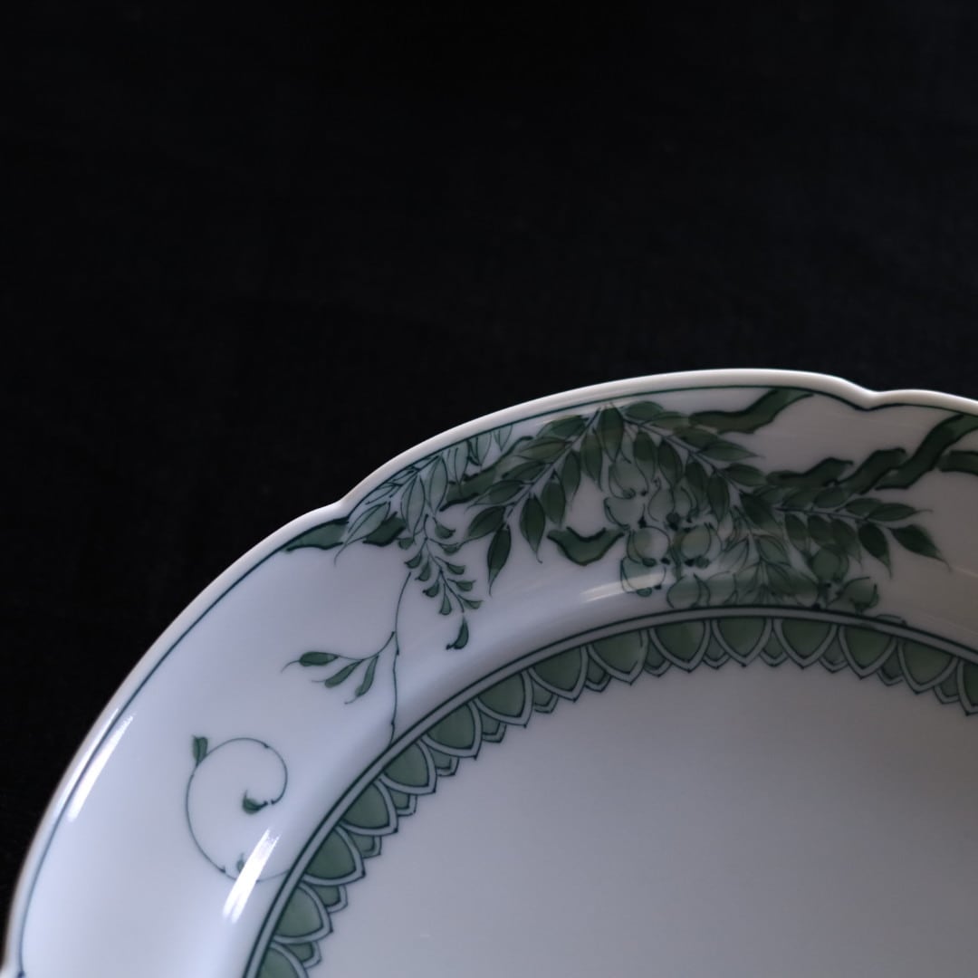 お好きな盛り付けでお楽しみください。三川内焼伝統の細描きを生かし、その曲線と濃淡を緑色で表現しています。