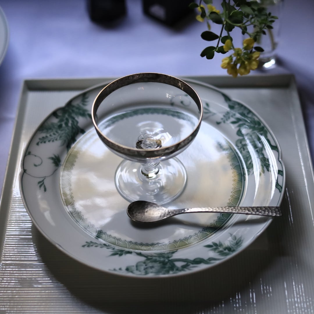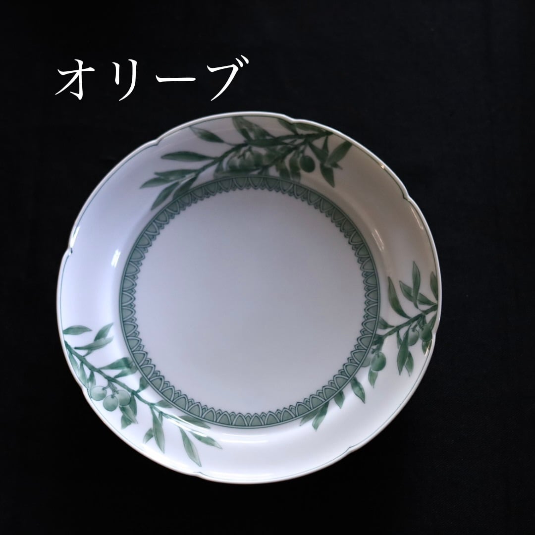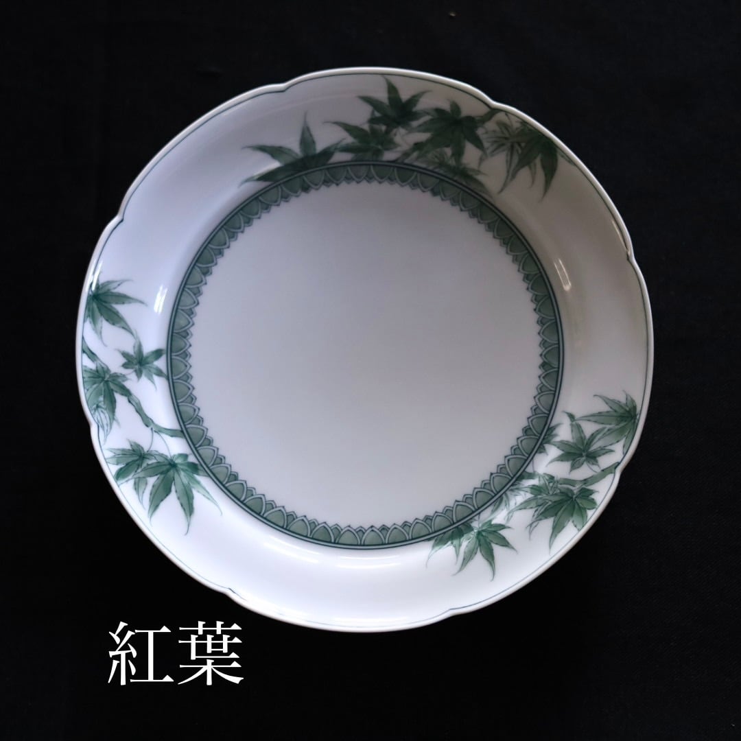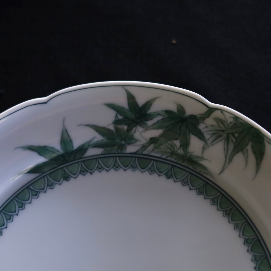 お好きな盛り付けでお楽しみください。三川内焼伝統の細描きを生かし、その曲線と濃淡を緑色で表現しています。