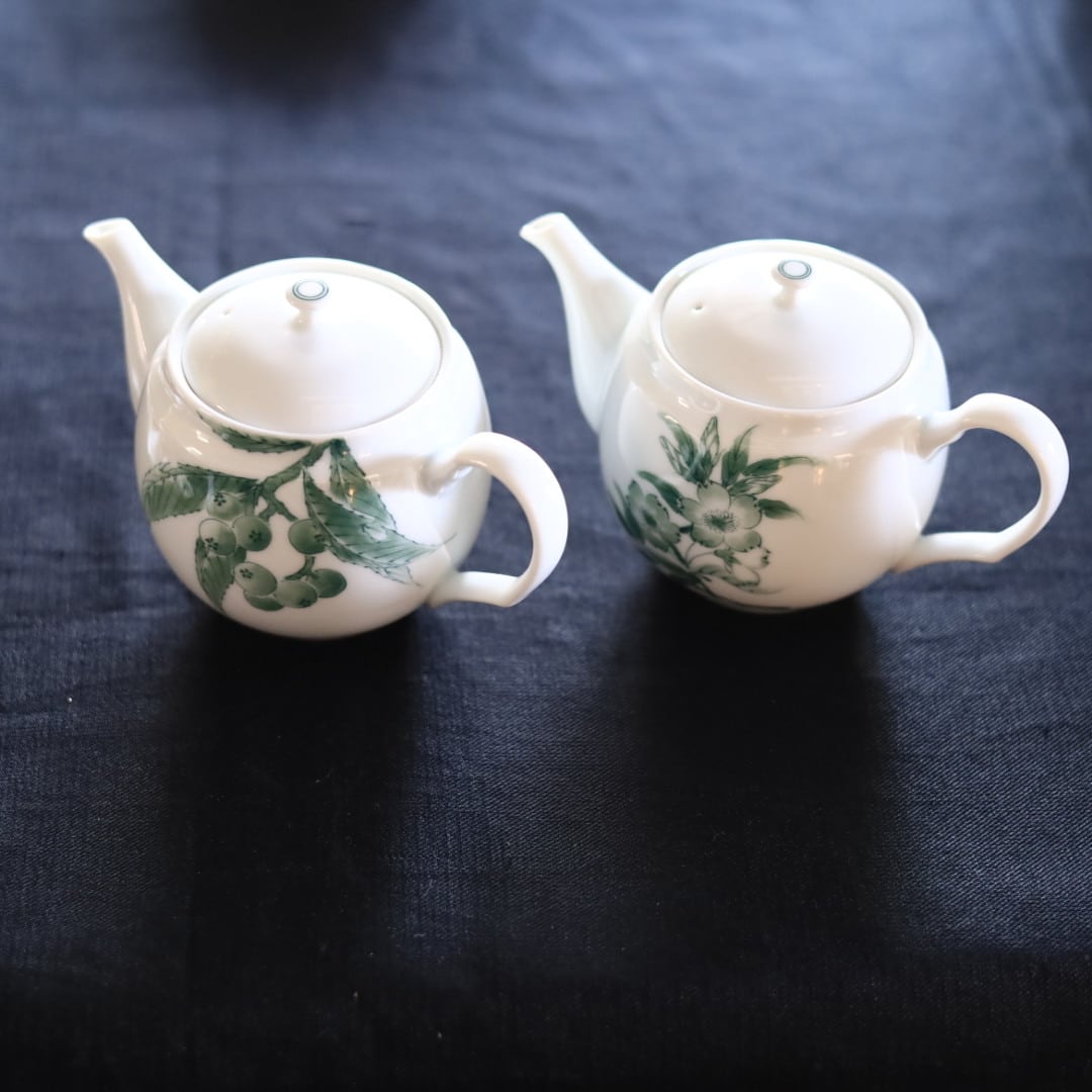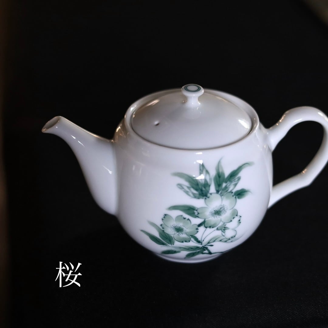 平戸松山窯の季節の花を描いた彩花シリーズの新色のポットです。