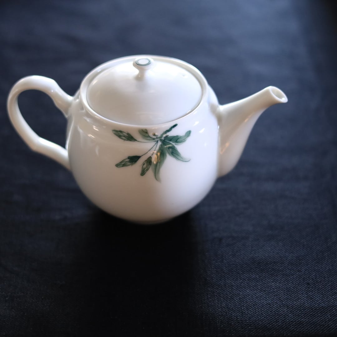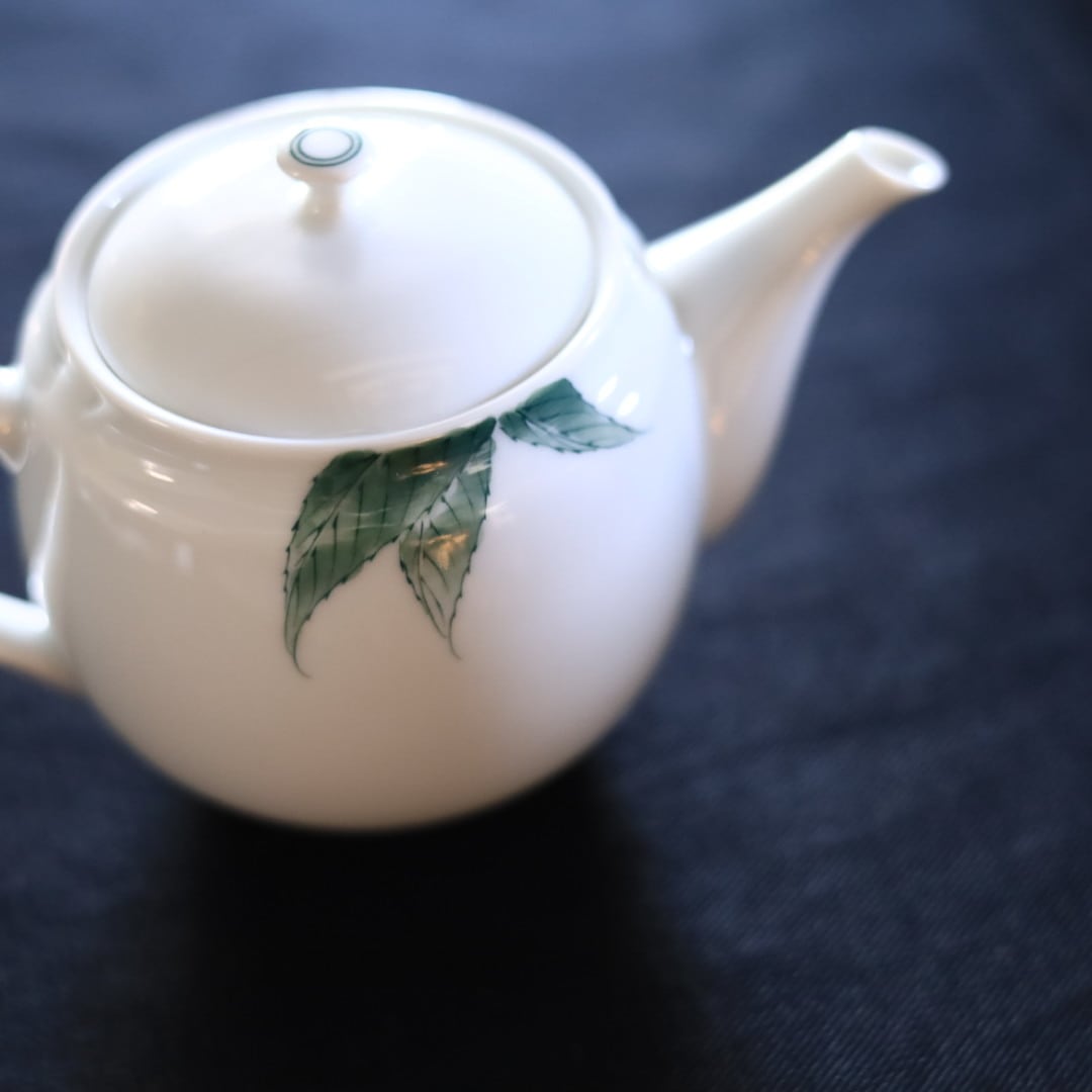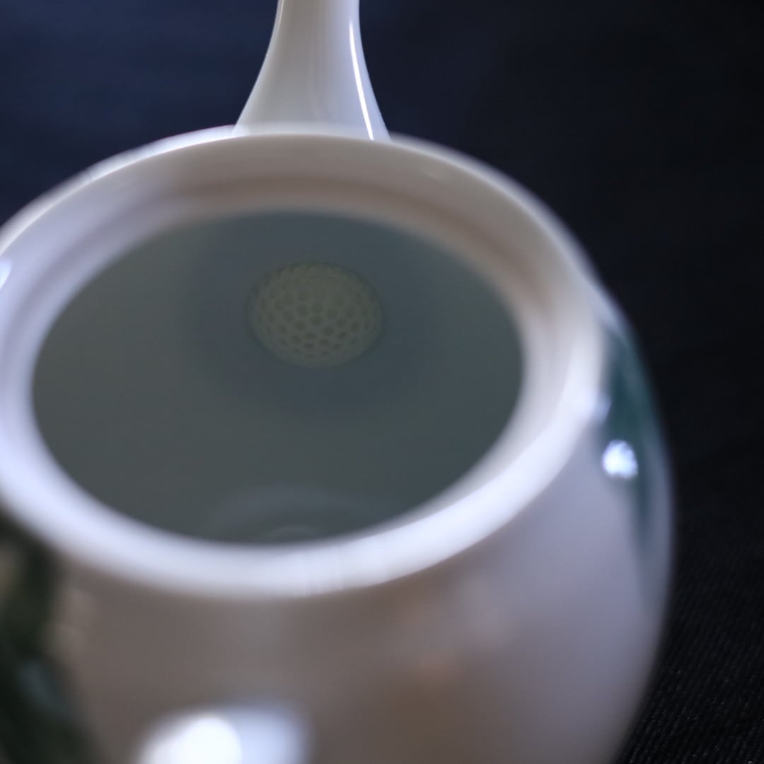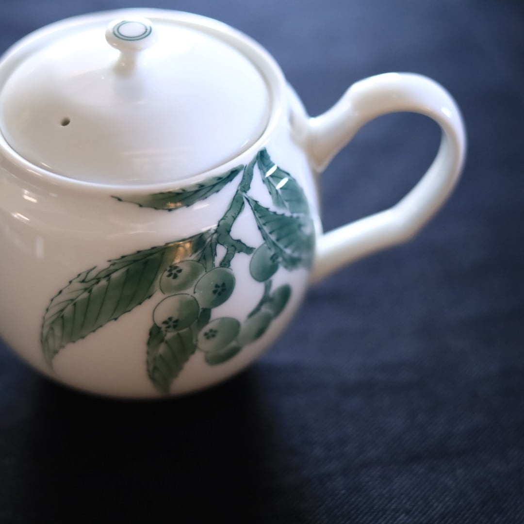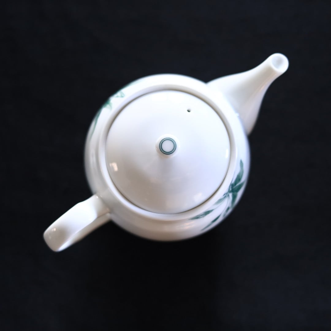 三川内焼伝統の細描きを生かし、その曲線と濃淡を緑色で表現しています。