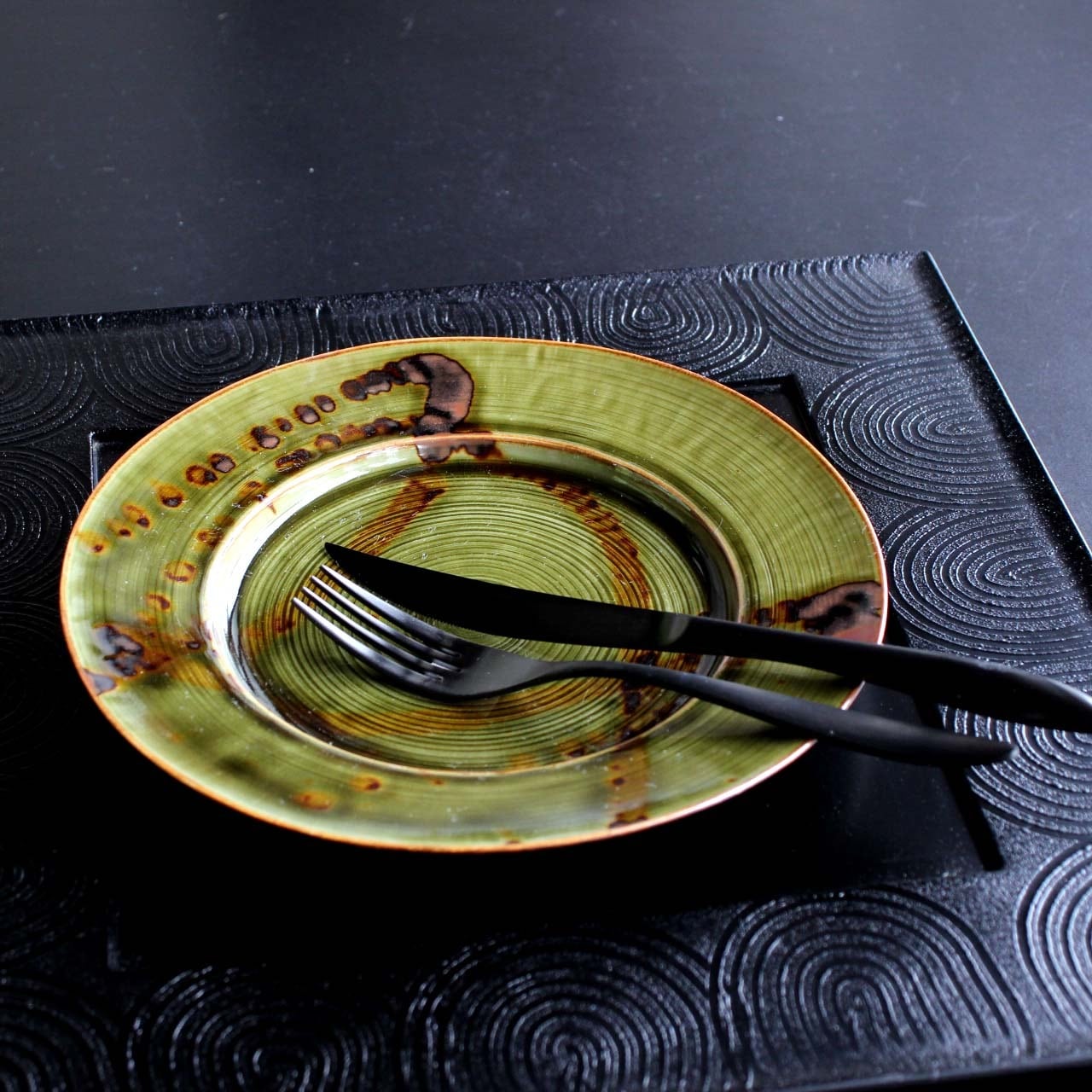 26007 錆叩きオリベ 千筋7寸リム皿