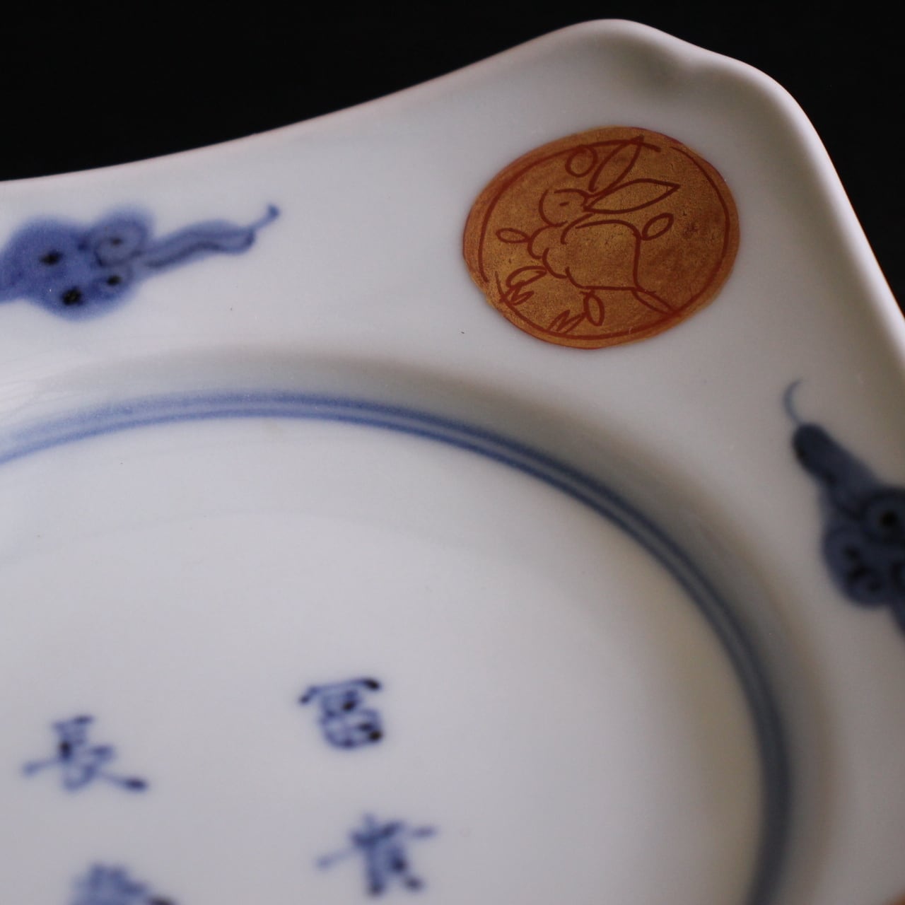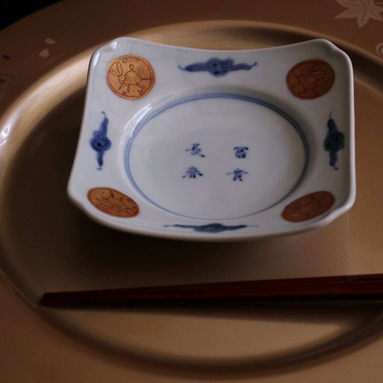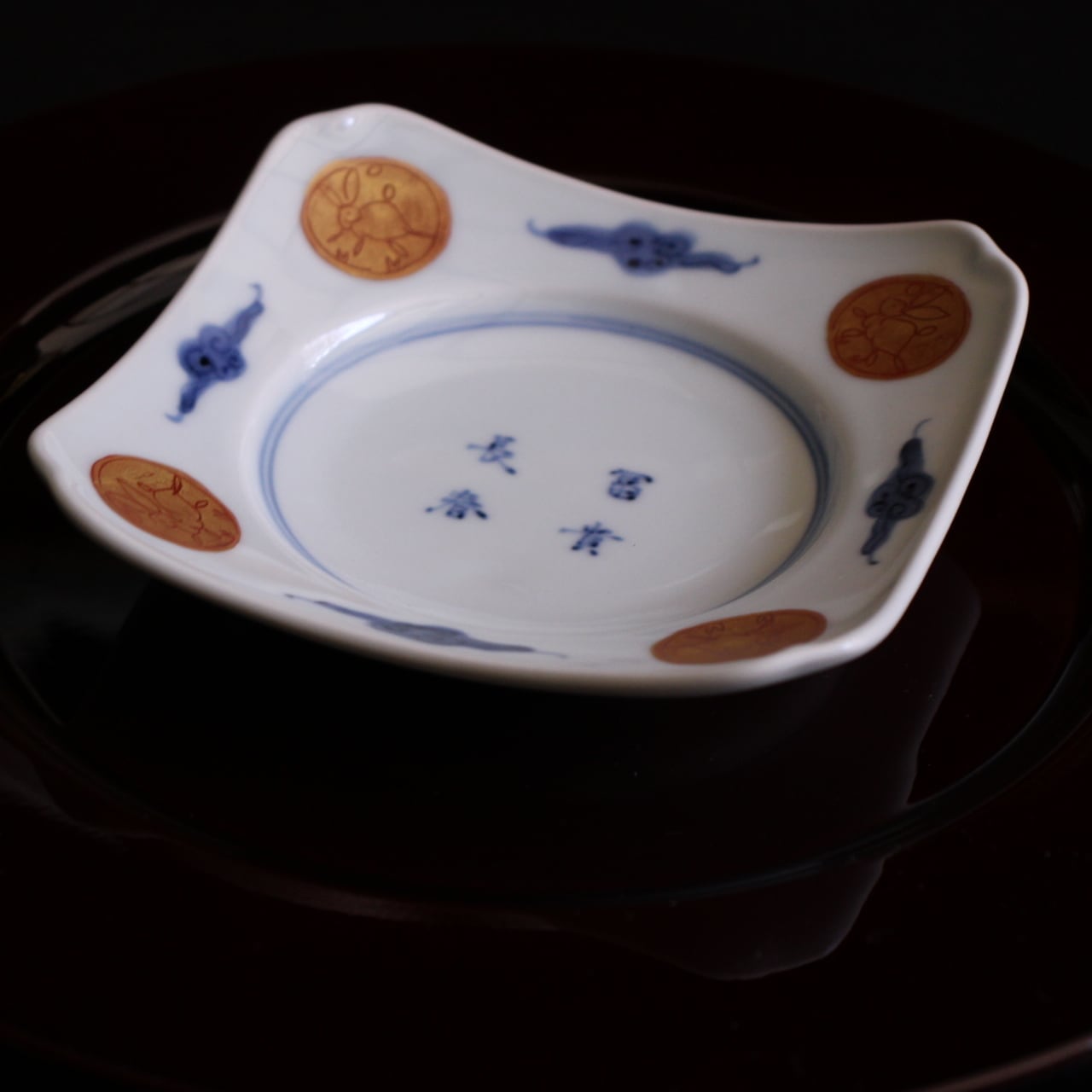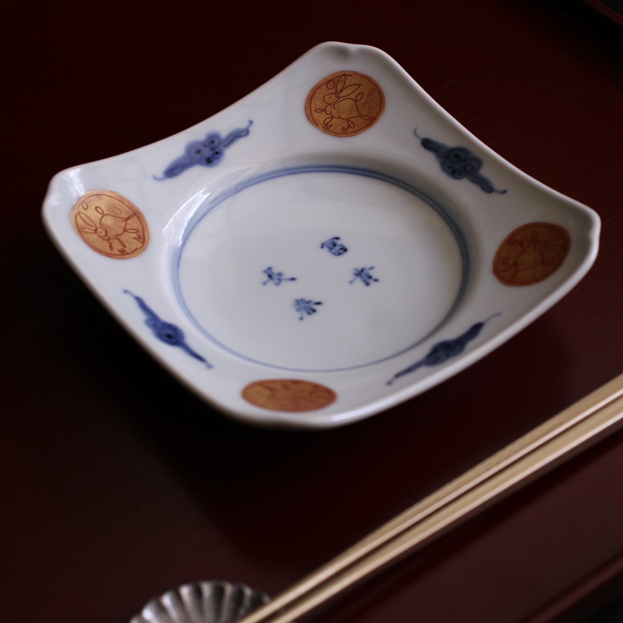 • 26224 富貴長春 兎 4寸四方4寸皿