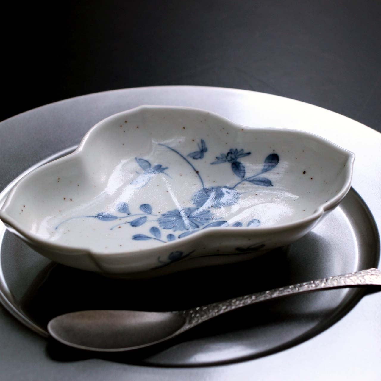 26422 古染菊に蝶 木瓜向付(鉄入り)