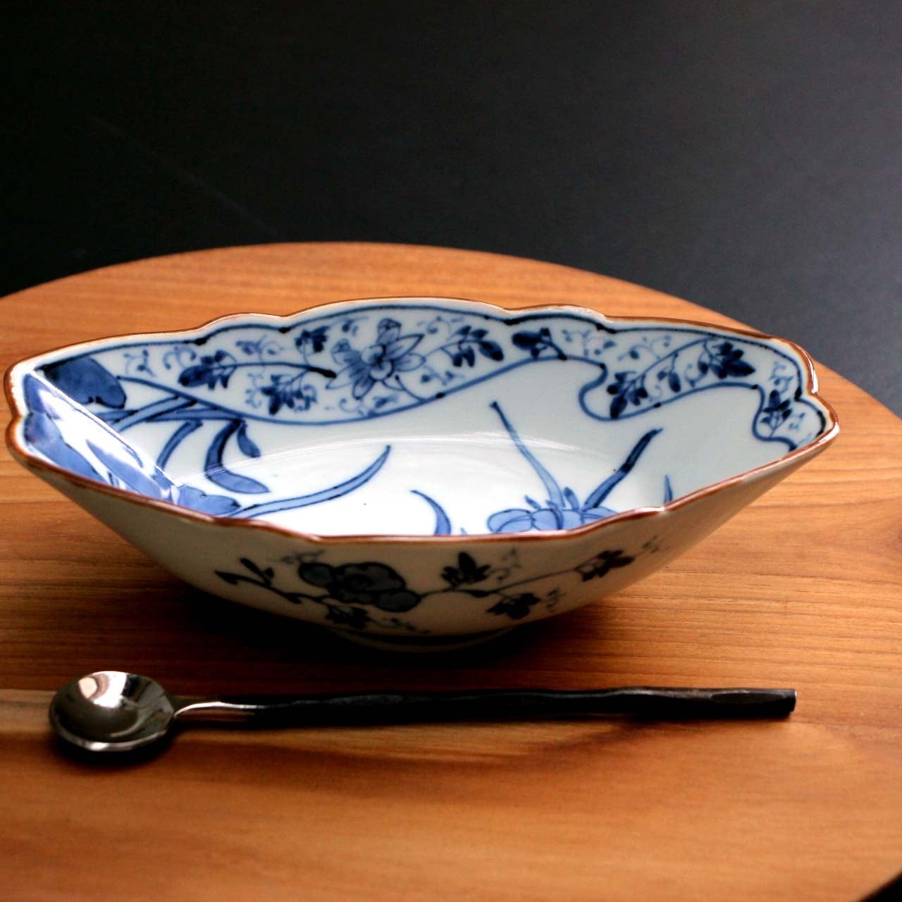 • 26421 古染アヤメ唐草 舟形小鉢