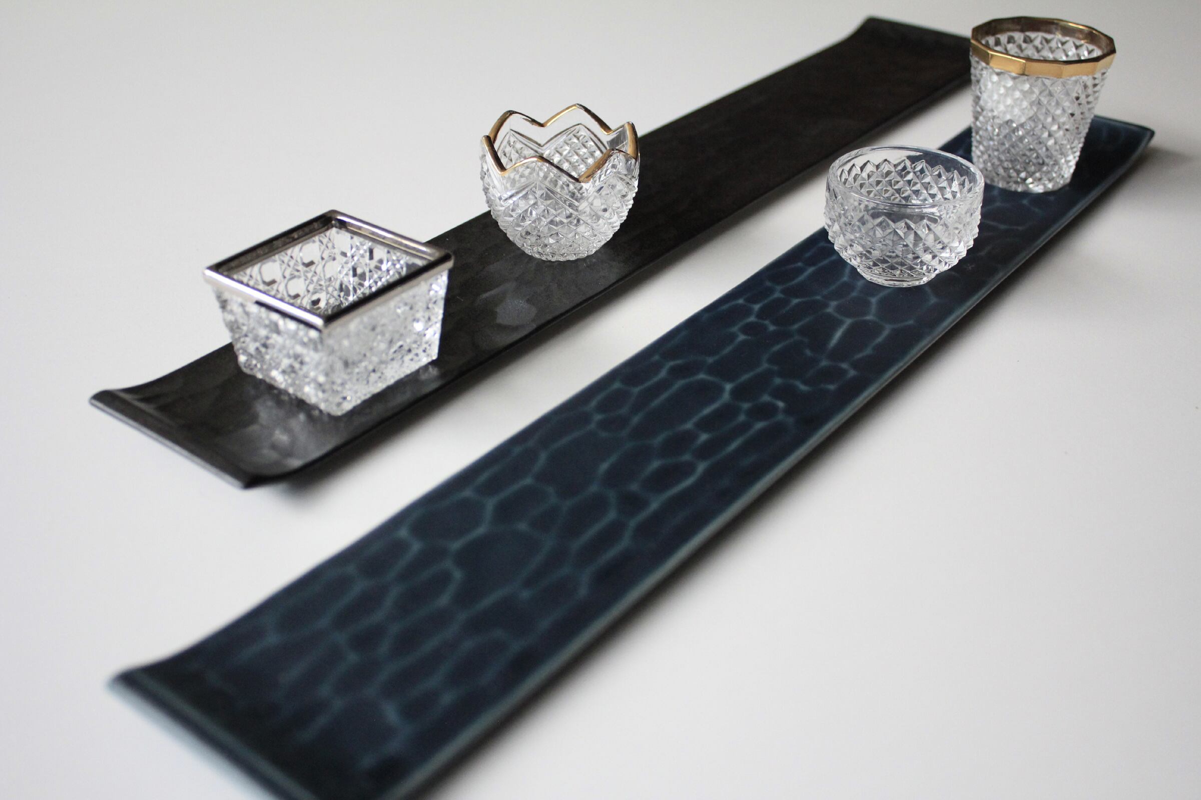 • AS 有田焼 乱彫 黒吹き 前菜皿