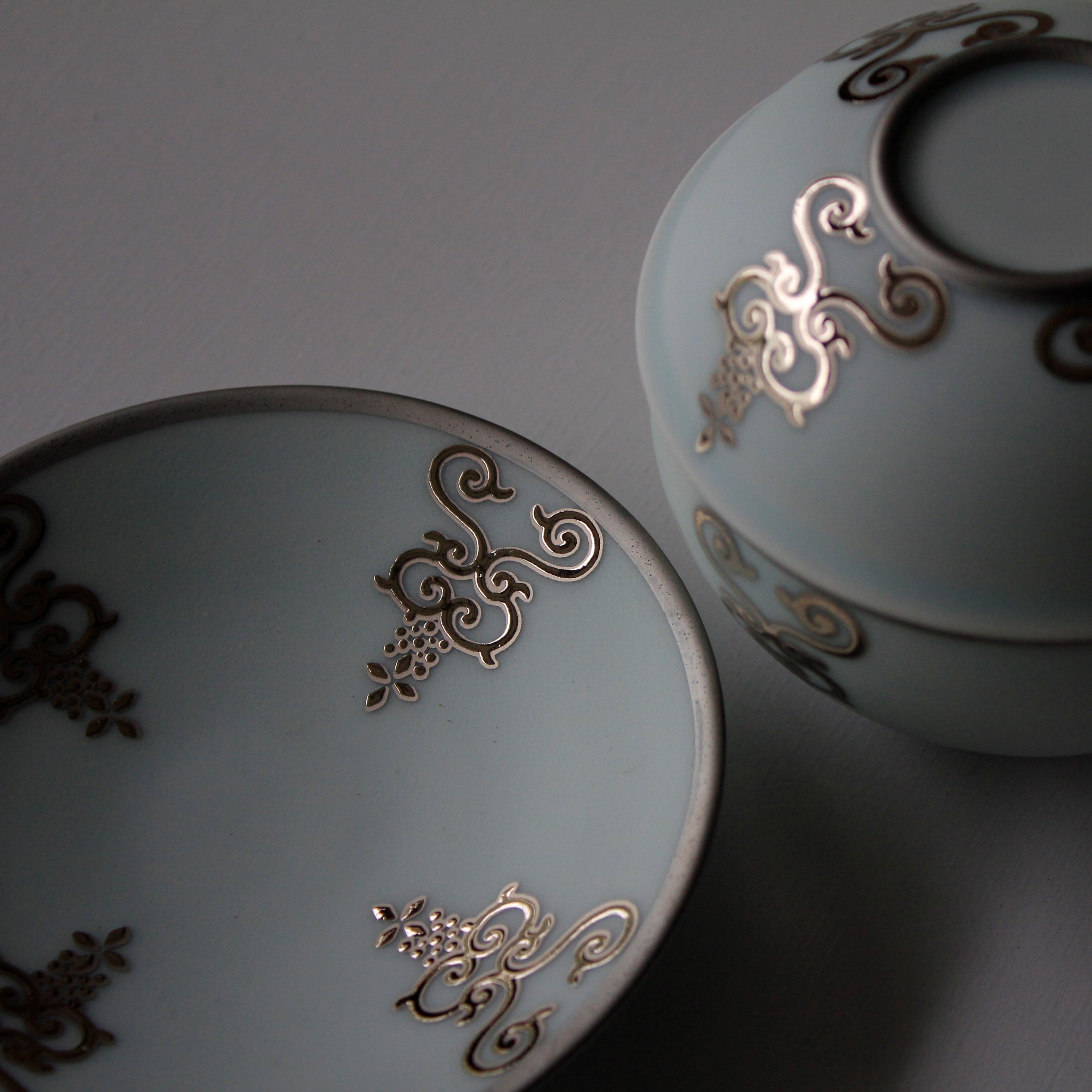 有田焼 蓋物 φ9.5×h8 台皿 φ11.5×h2 容量 MAX 200cc 7~8分目100cc 1セット(蓋+身+台皿)での販売です。