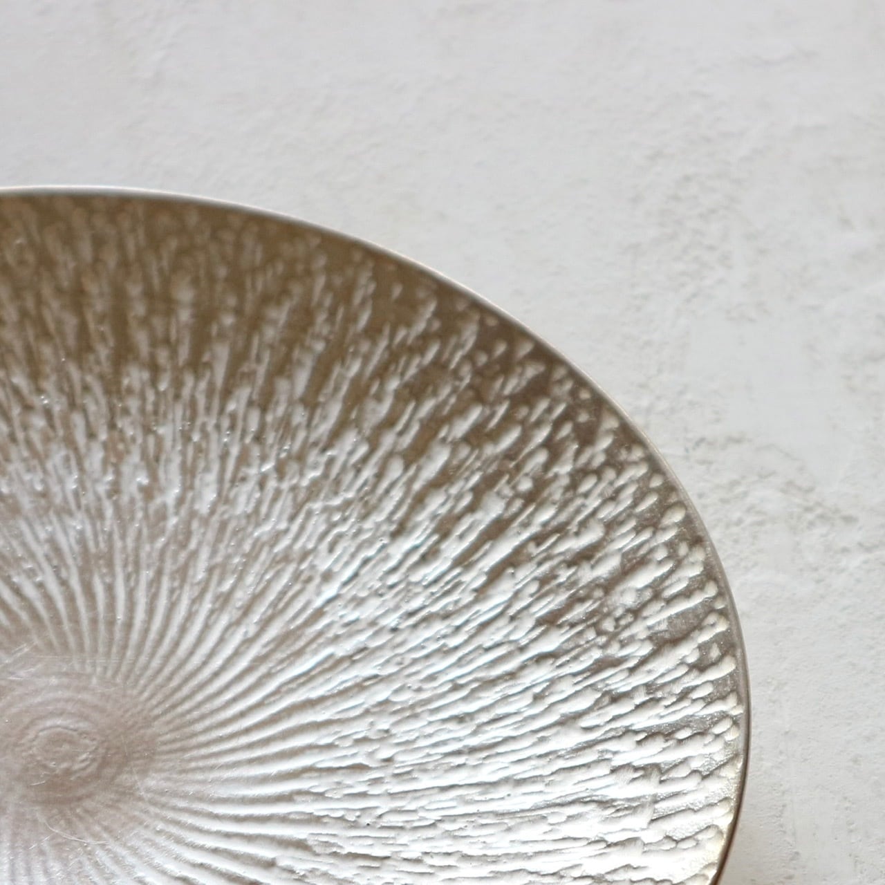 有田焼 / 銀彩 サイズ:φ14.0cm h1.5cm 皿のみの商品です。 蓋物は別売りです。 【お手入れについて】 銀彩のうつわです。 空気に触れることで時間と共に酸化し、自然と黒ずんできます。 重曹ペーストや食器用銀磨きでお手入れしていただくと、簡単に元の美しい状態に戻ります。 【使用不可】 ・漂白剤 ・電子レンジ/食洗機 【その他の注意事項】 ・酢の物、ゆで卵、油を使った高温の料理は変色の原因となります ・調理には使用しないでください