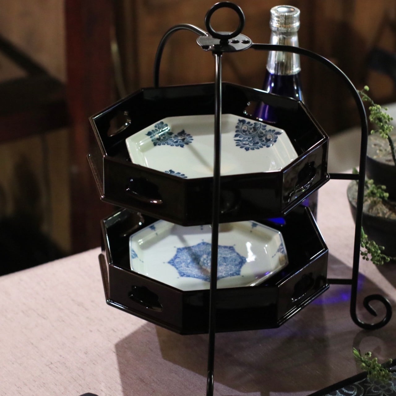 AS 溜漆調 瓢抜き八角盛器(洗浄機対応)