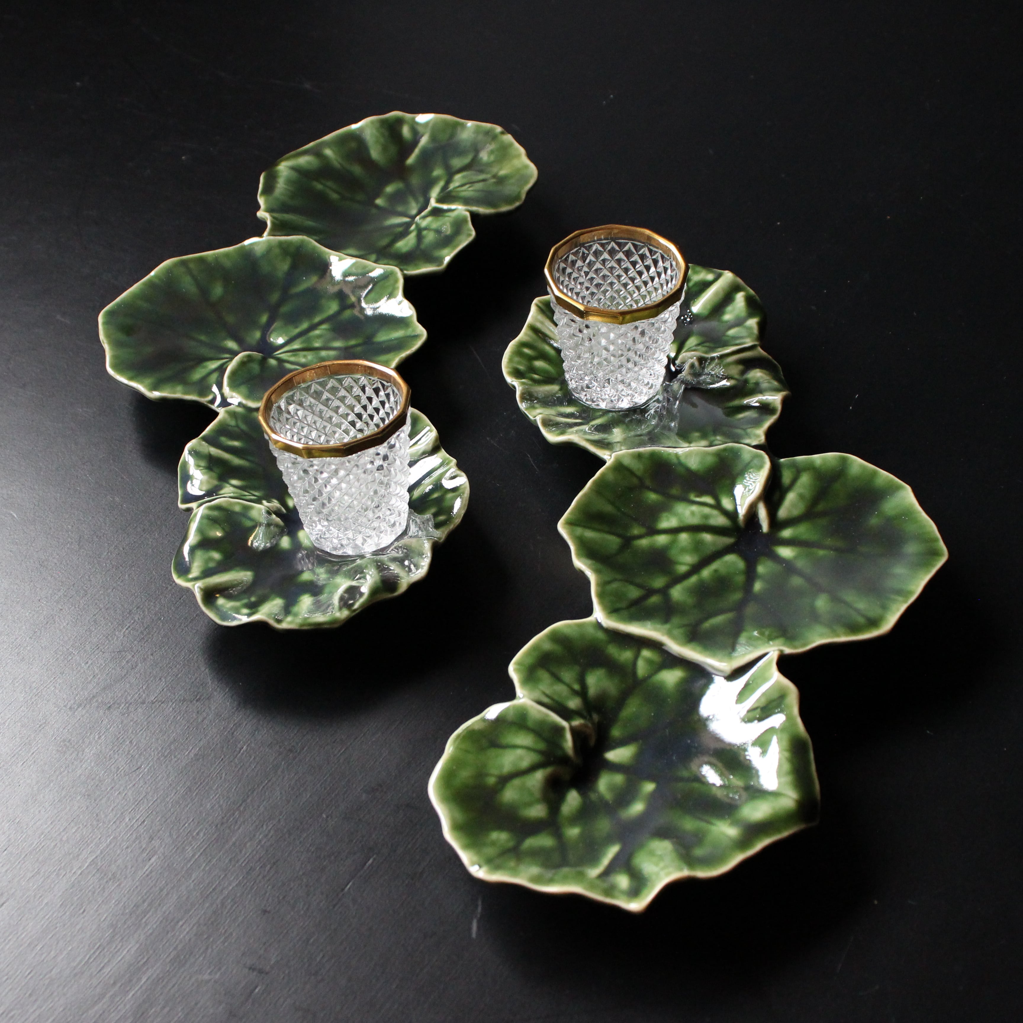 • 織部 三連ツワの葉 アミューズ皿