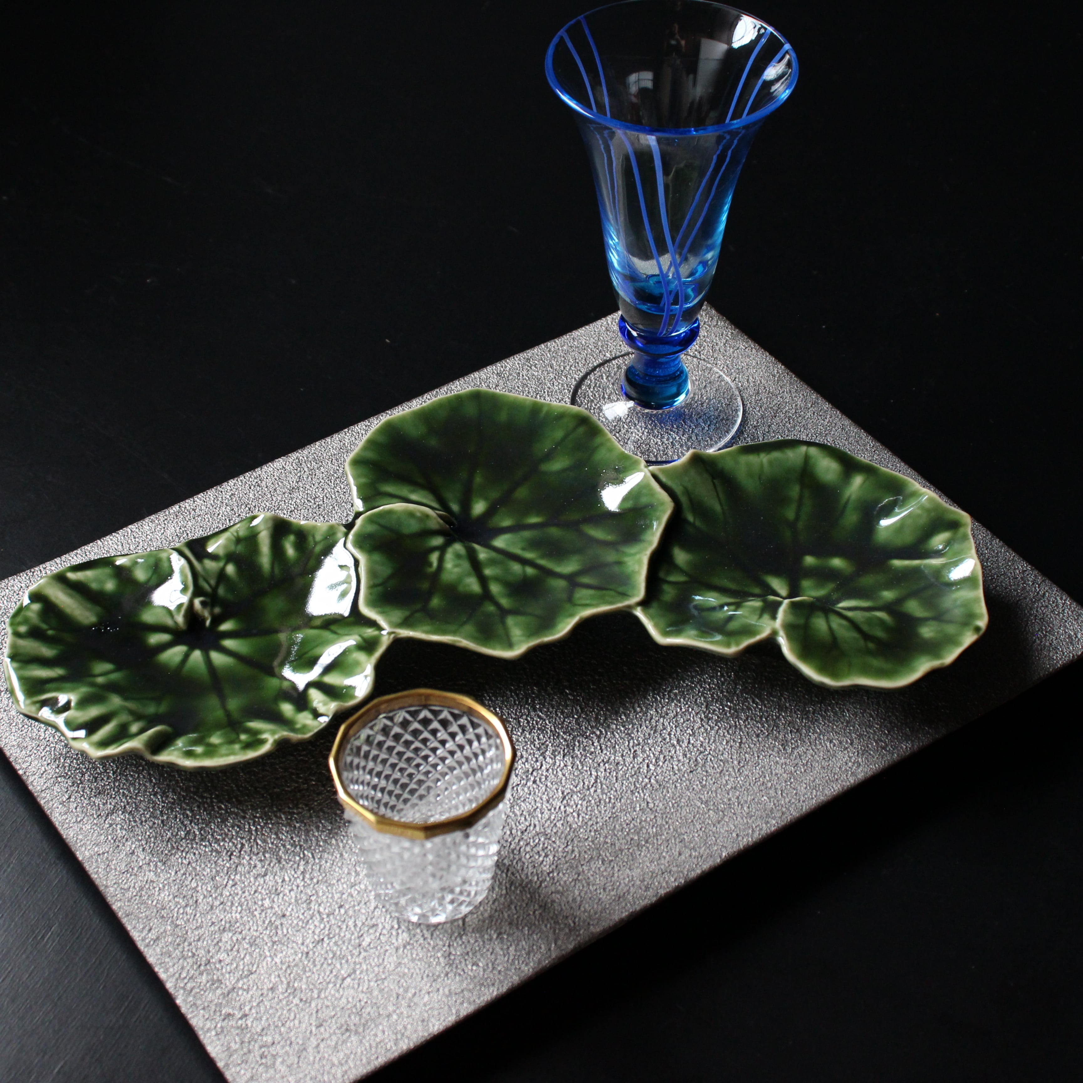 織部 三連ツワの葉 アミューズ皿