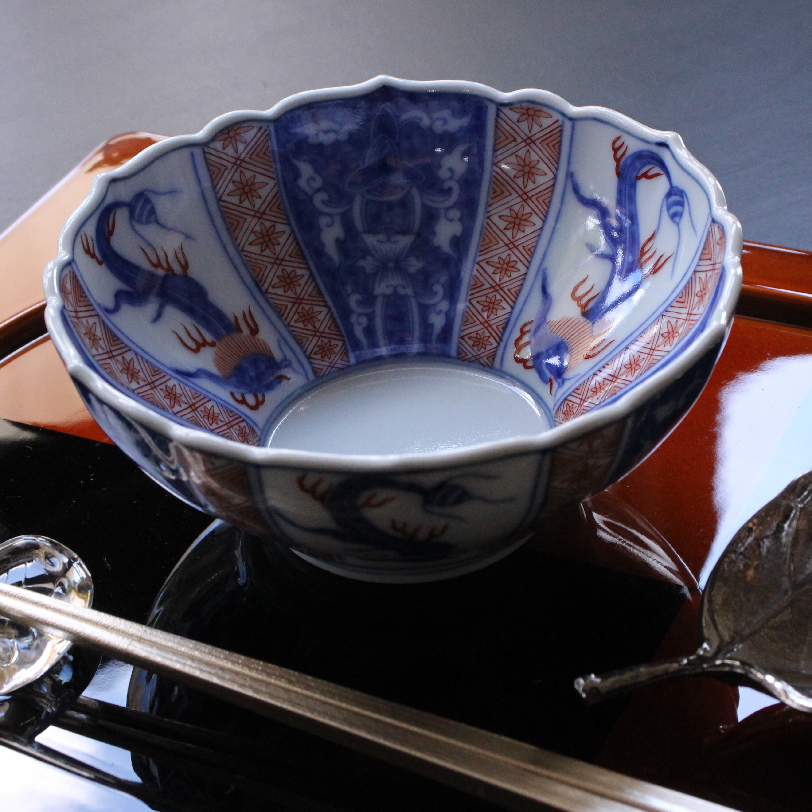 • 間取り龍 赤絵地紋 輪花小鉢(大)